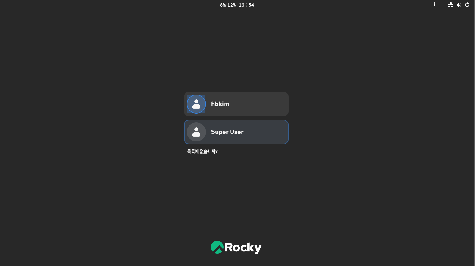 안보인다면 목록에 없습니까? 눌러주고 VM에 생성할때 만든 관리자 계정으로 로그인해주자.
